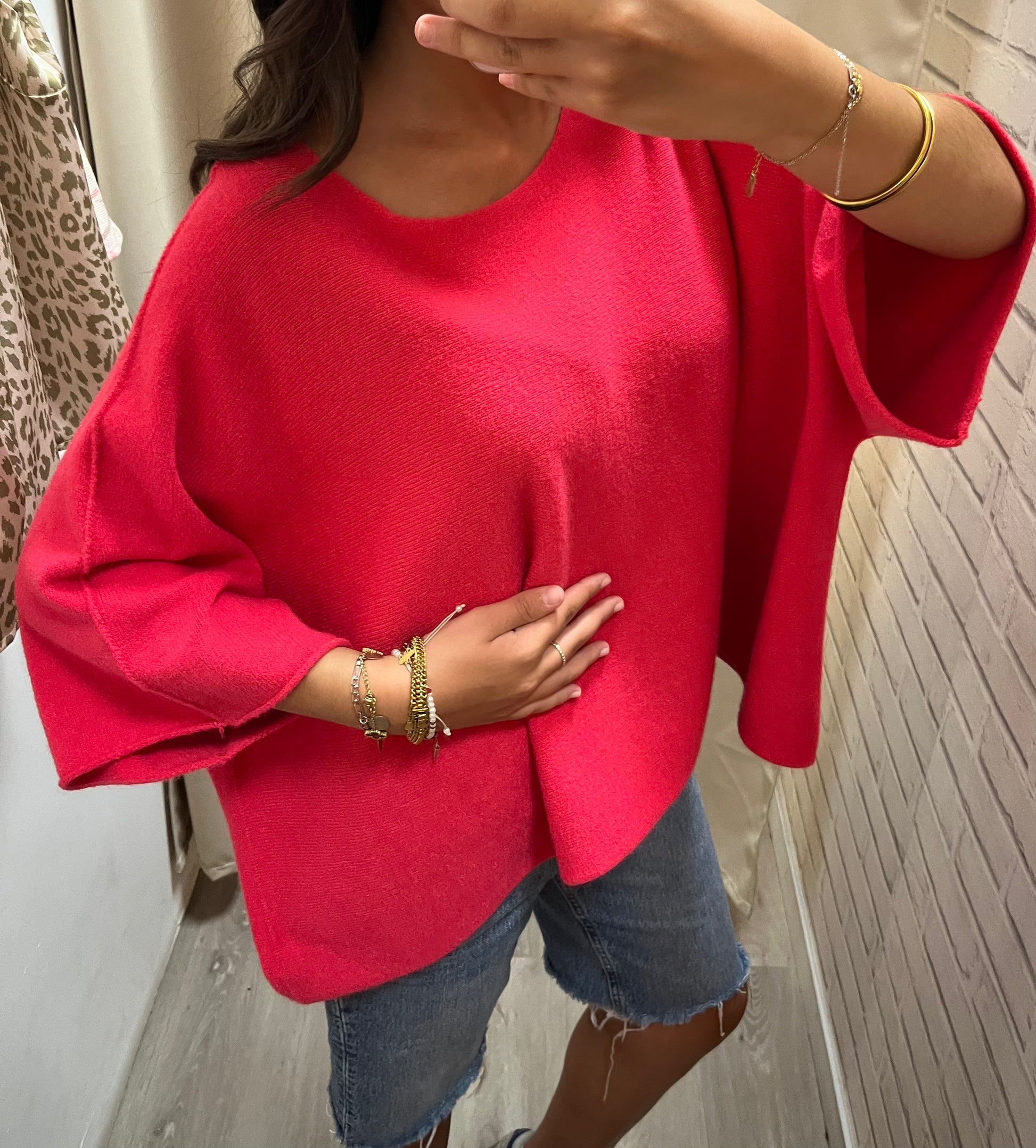 Pull manche 3/4 couleur rose fushia